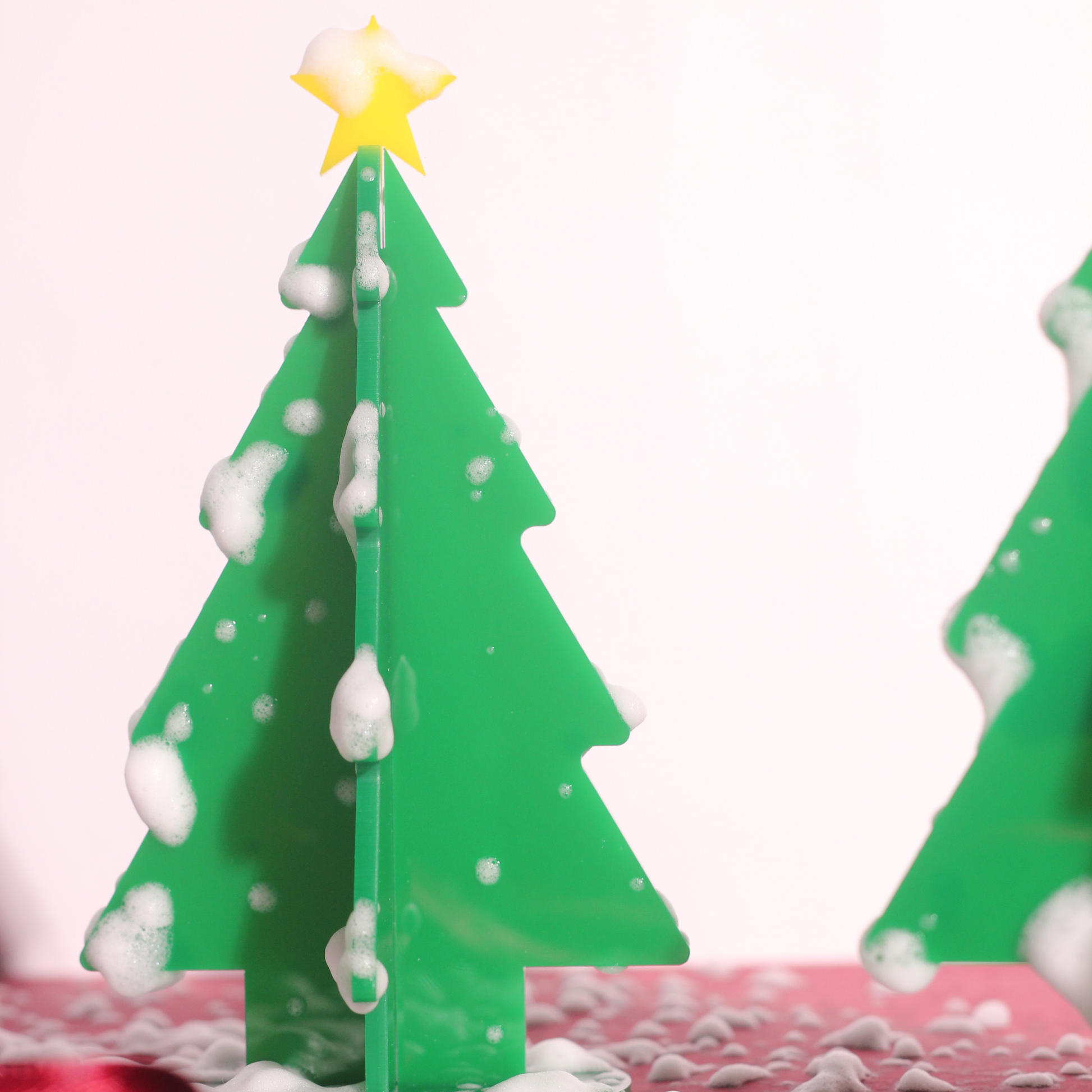 A limited edition festive decor piece. This set includes a pair (big and small) of intricately designed acrylic trees accompanied by a star, featuring a unique interlocking mechanism. Easy to assemble, it transforms into an elegant centre piece while combining playfulness with modern aesthetics.